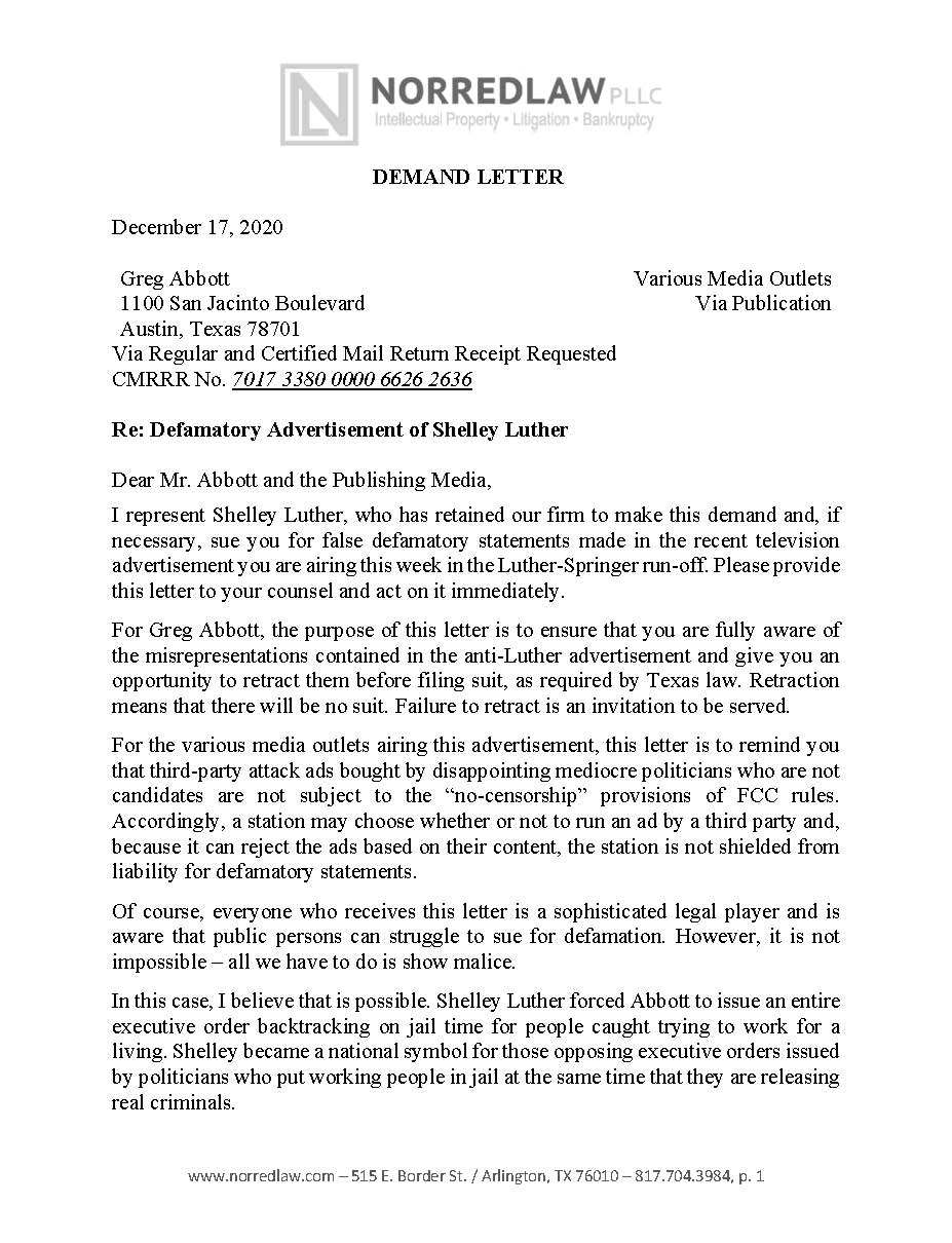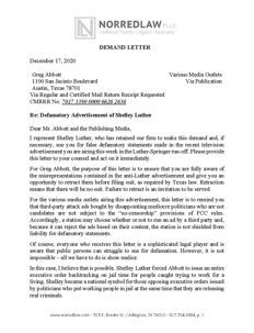 In response to false defamation, Texas law requires that a demand letter be sent before suit is filed. Norred Law mailed that letter today, which you can see HERE.
