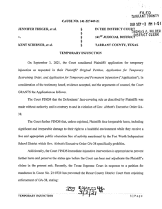 After a protracted hearing on the application for a temporary injunction following the granted TRO, Judge Chupp of the 141st District Court granted the requested injunction!